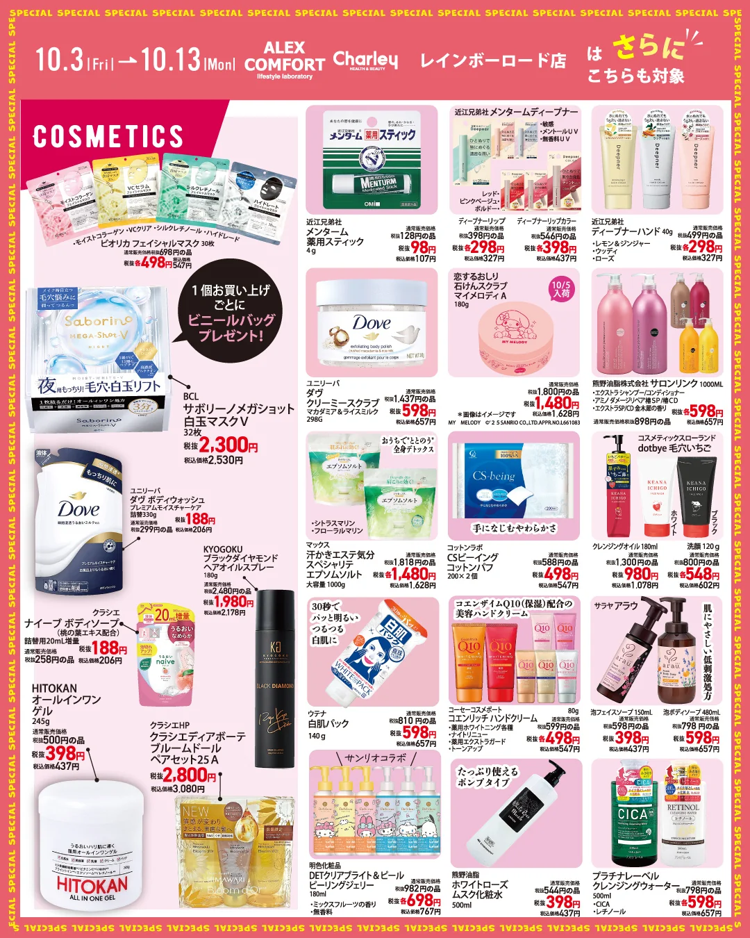 【アレックスコンフォート】10月の特別キャンペーン(10/3〜10/13)