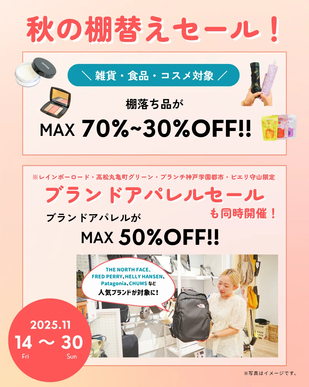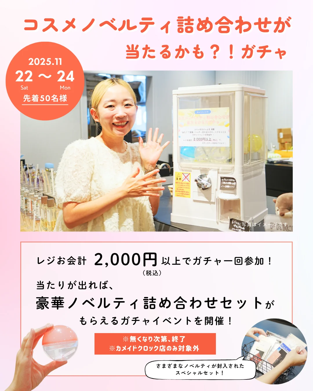 人気コスメノベルティがランダムで当たるチャンス「コスメノベルティガチャ」、憧れのブランド香水が試せる「香水量り売りイベント」、「秋の棚替えセール」、大人気の「スタンプキャンペーン第3弾」など、イベント盛りだくさん!お得な商品も満載なので要チェックです。
