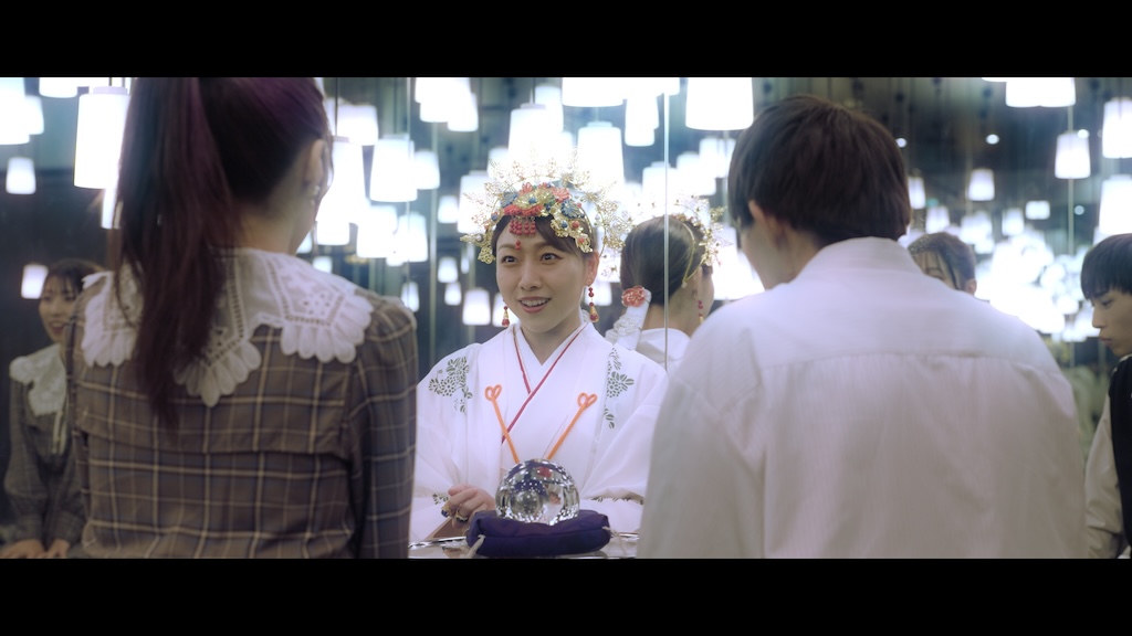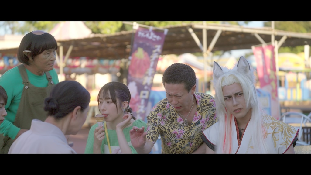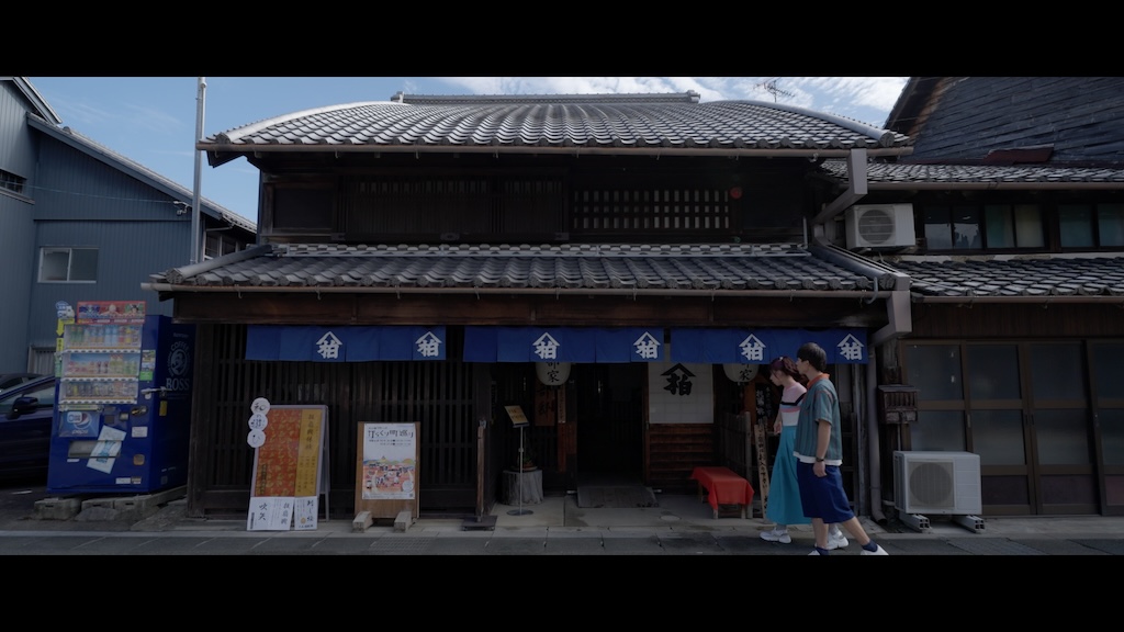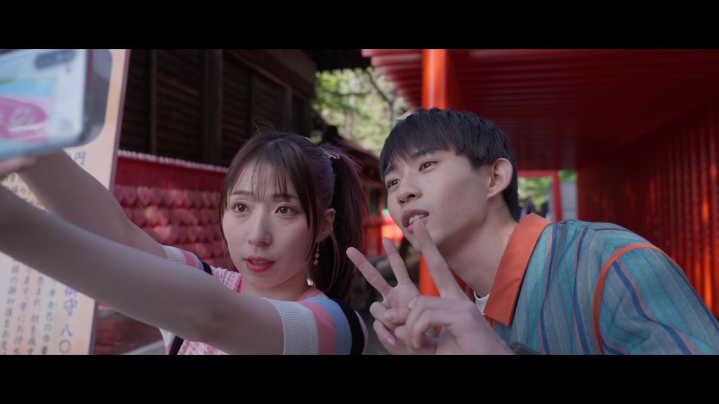 ▲ 美里(大黒柚姫)と拓人(平野莉玖)のデートシーン。犬山城下町の三光稲荷神社にて撮影。