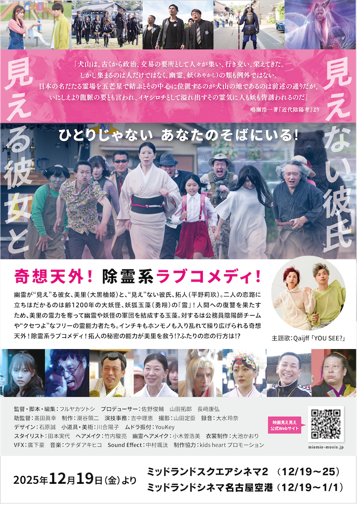 愛知・犬山オールロケ!大黒柚姫×平野莉玖W主演、奇想天外な”除霊アクションラブコメ”映画『見え見え』が12月19日より愛知先行上映!