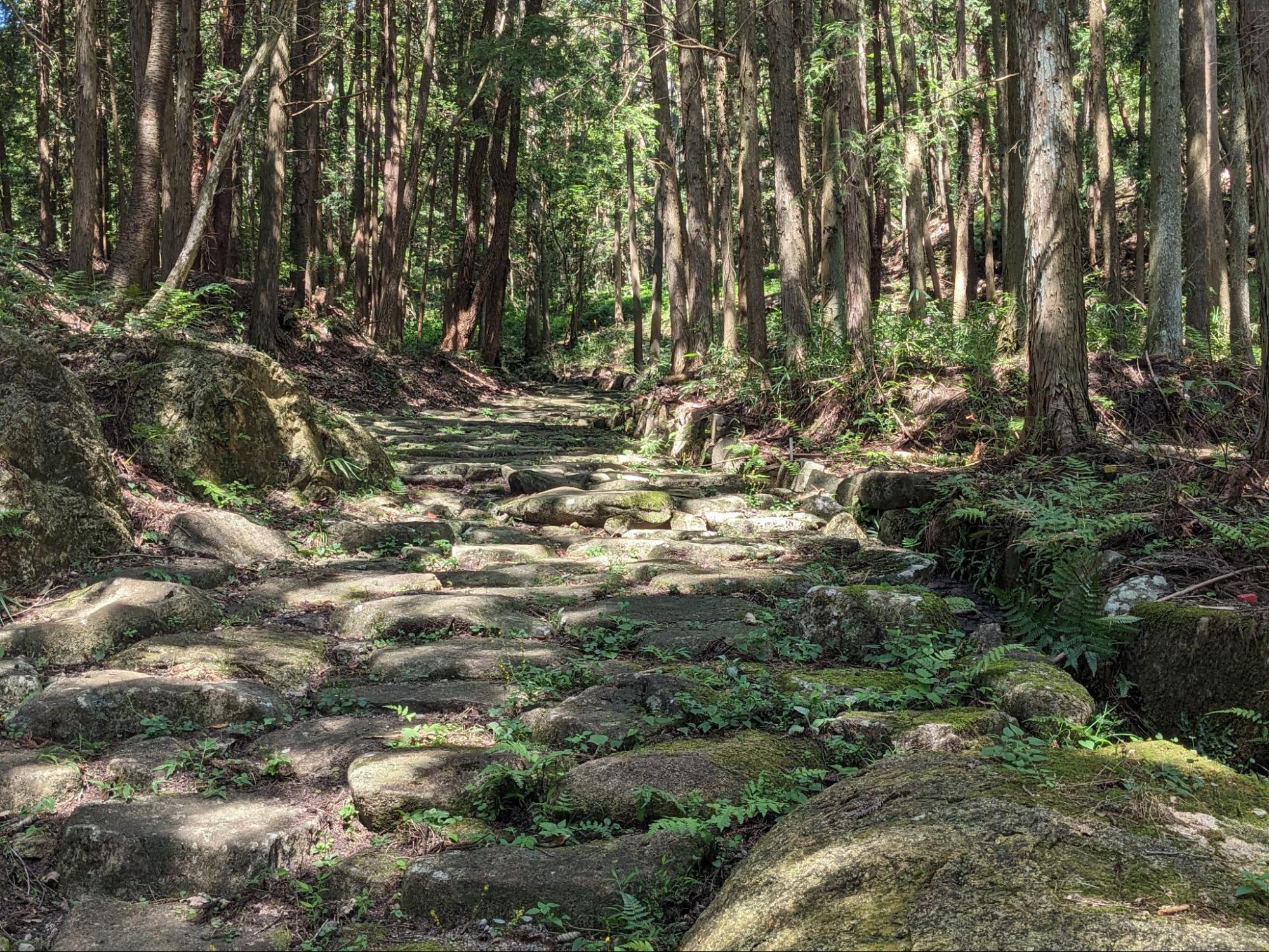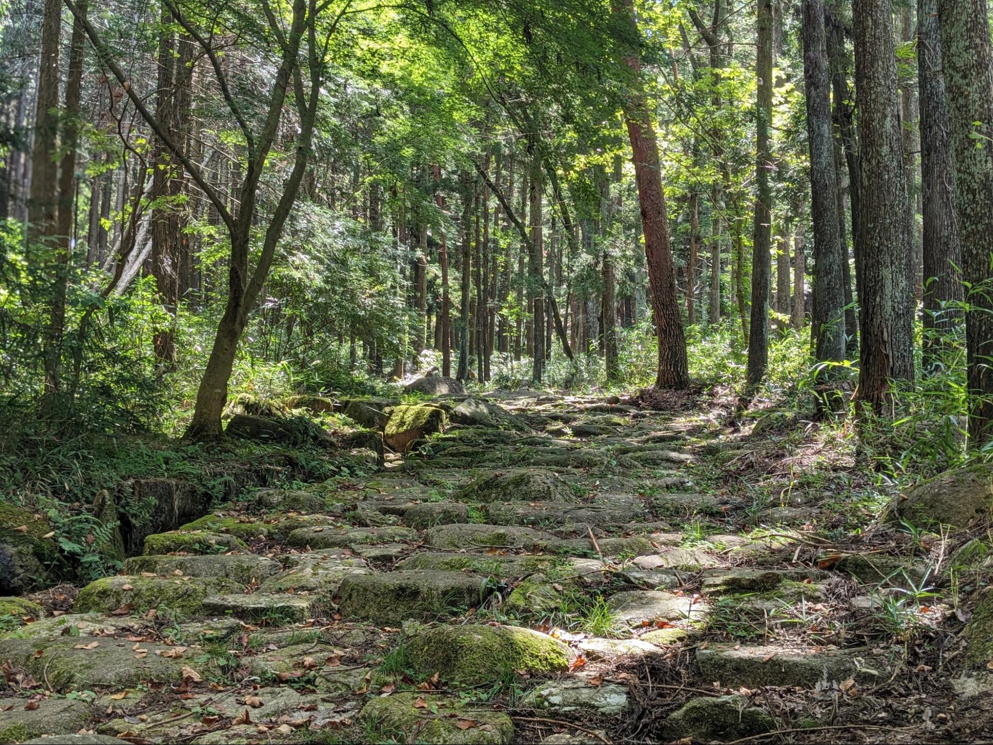 この峠には、日本最大級ともいわれる全長約730mの石畳が敷かれており、往時の風景を感じさせる貴重な場所です。