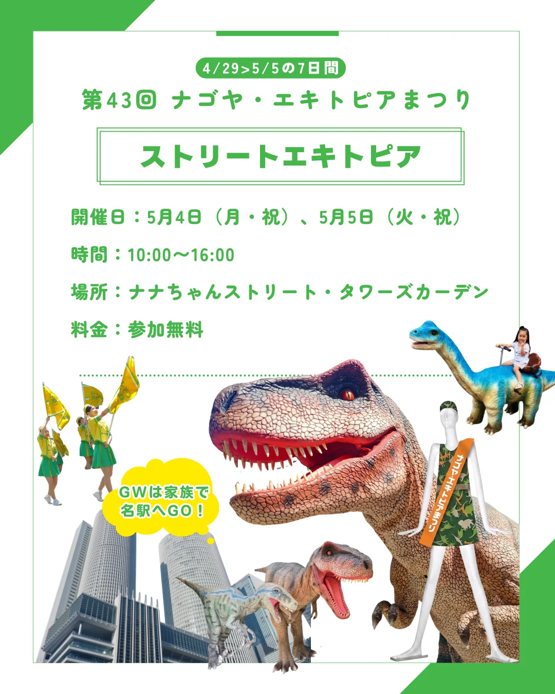 第43回 ナゴヤ・エキトピアまつり 名駅に恐竜が出現!?GWは家族で「ストリートエキトピア2026」へ行こう!