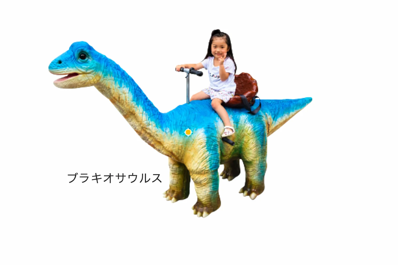 恐竜に乗って写真が撮れるフォトジェニックなスポットも。子どもたちに大人気の記念撮影コンテンツで、SNS映えする1枚を狙おう。