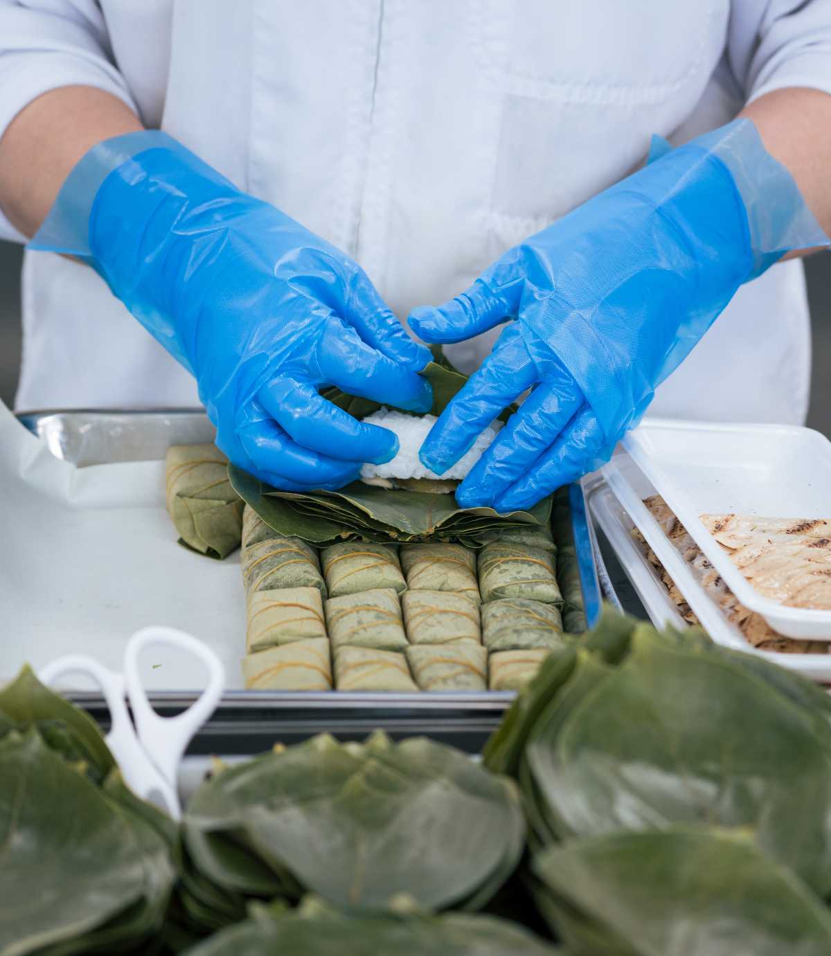 奈良県吉野地方を代表する郷土料理・柿の葉ずし。江戸時代 末期の文久元年に創業した老舗「柿の葉ずし 平宗」は、その 味わいと食文化を大切に守り、次代へと受け継いできました。 イベント当日は、普段は立ち入ることのできない製造工場の特 別見学に加え、自分で柿の葉ずしをつくる体験を実施します。