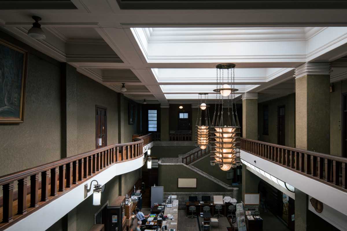 1930年竣工、2023年に国の登録有形文化財に登録された 図書館。イベント当日は、レトロ建築として人気を博す館内 を、ツアー形式でご紹介。中世西ヨーロッパ風の外観と開館 当初から使用し続けている大理石のカウンターや窓ガラス、 椅子、机などを配した空間に出会えます。