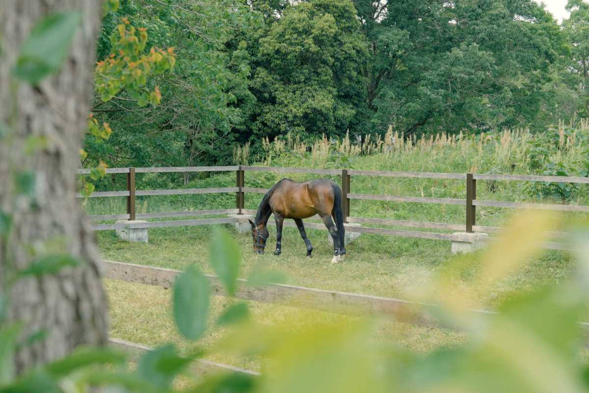 創部90年を超える歴史をもつ馬術部。2019年からは馬との触れあ いを通じて心身の調和を図る「ホースセラピー事業」を開始。現在 は、ご長寿サラブレッド3頭とポニーの“てんてん”を含む4頭の馬と ともに活動しています。ストレスや不安を抱える方も、やさしい馬と の見学や触れあいを通じて、癒しの時間をお過ごしください。