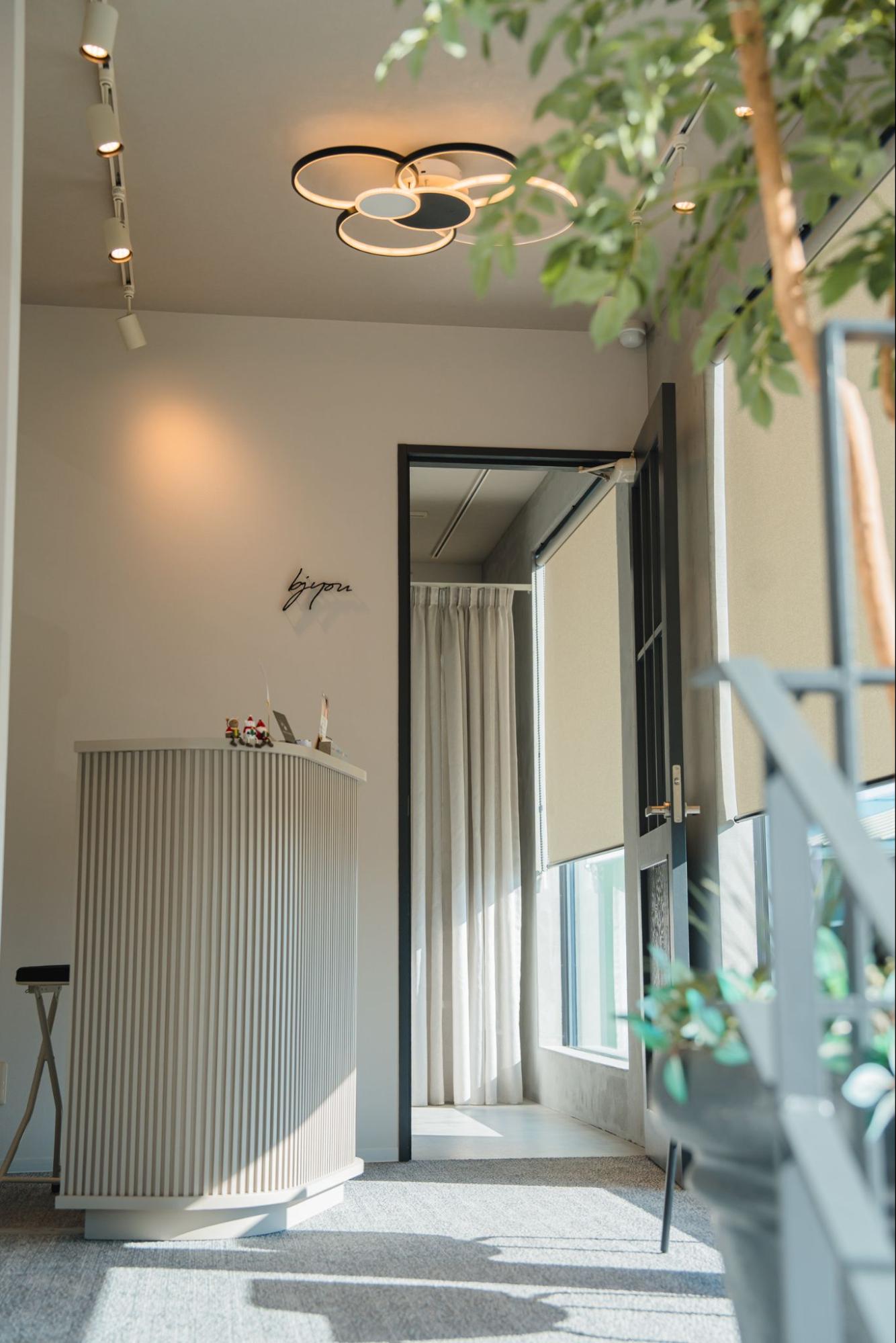 2階にはトータルビューティーサロン「ビジュー」も併設しており、ネイル、アイラッシュ、アイブロウ、脱毛、ホワイトニングなど、頭からつま先までトータルでキレイになれるサービスを提供しています。贅沢な空間で、至福のひとときをお楽しみいただけます。」