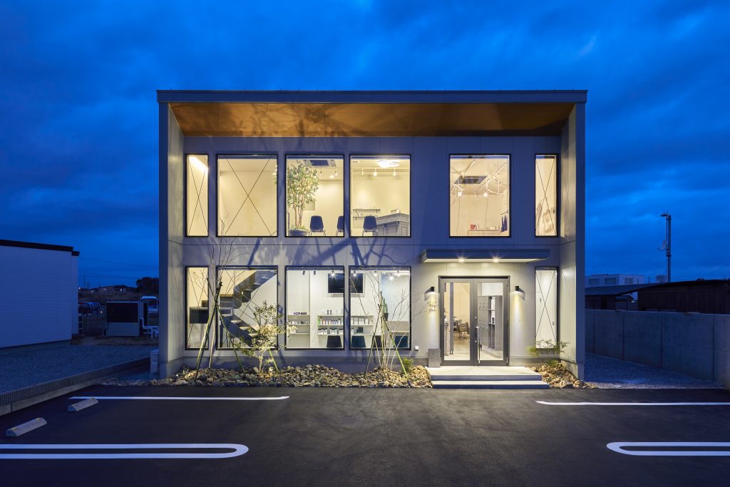 窓の大きい外観は、明るく開放的な雰囲気が漂っています。夜には大きな窓から光が溢れて昼とは違う表情を魅せてくれます。