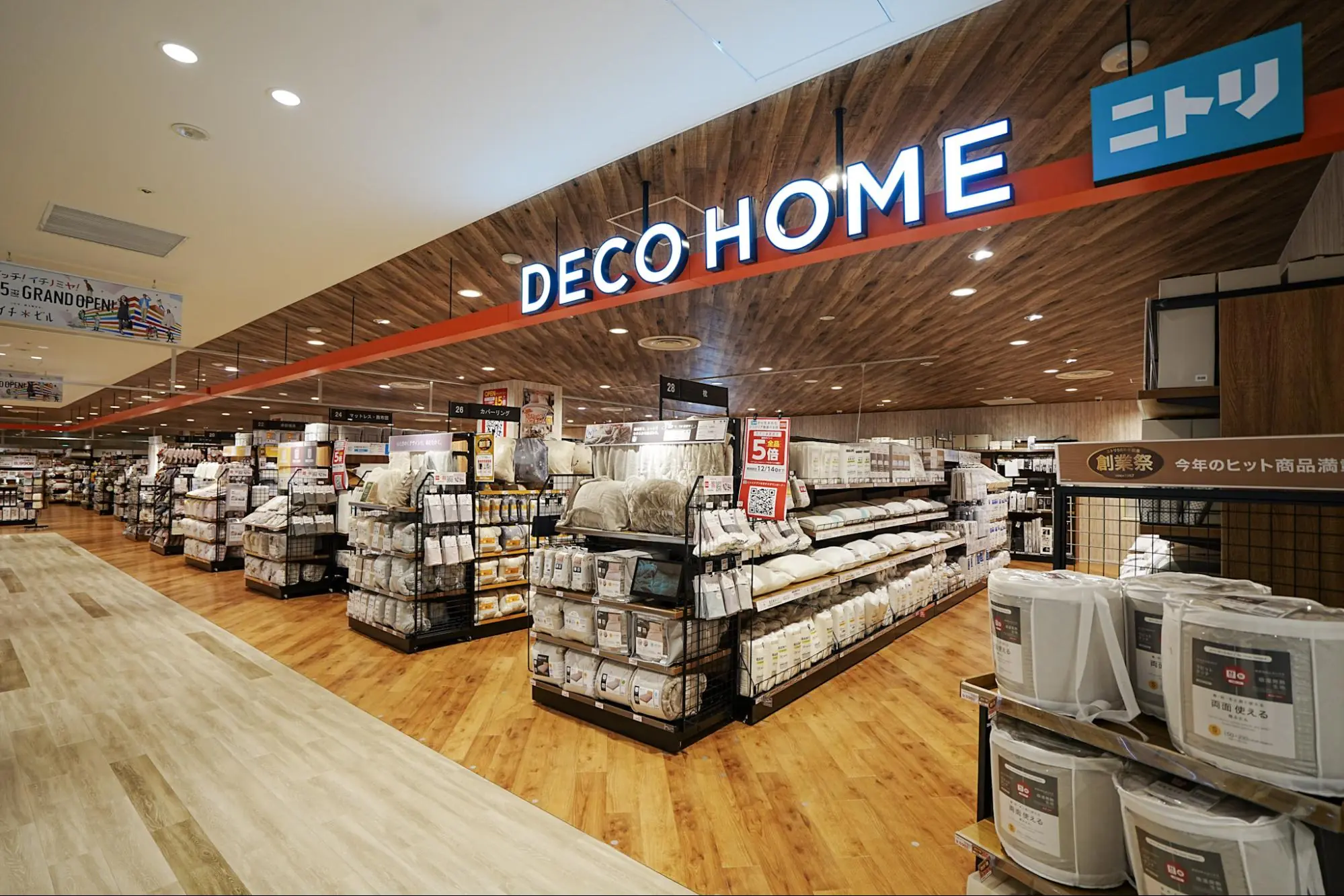 インテリア用品や生活雑貨をそろえる「ニトリ デコホーム」その他にファッション・服飾雑貨、各種サービスの店舗も。