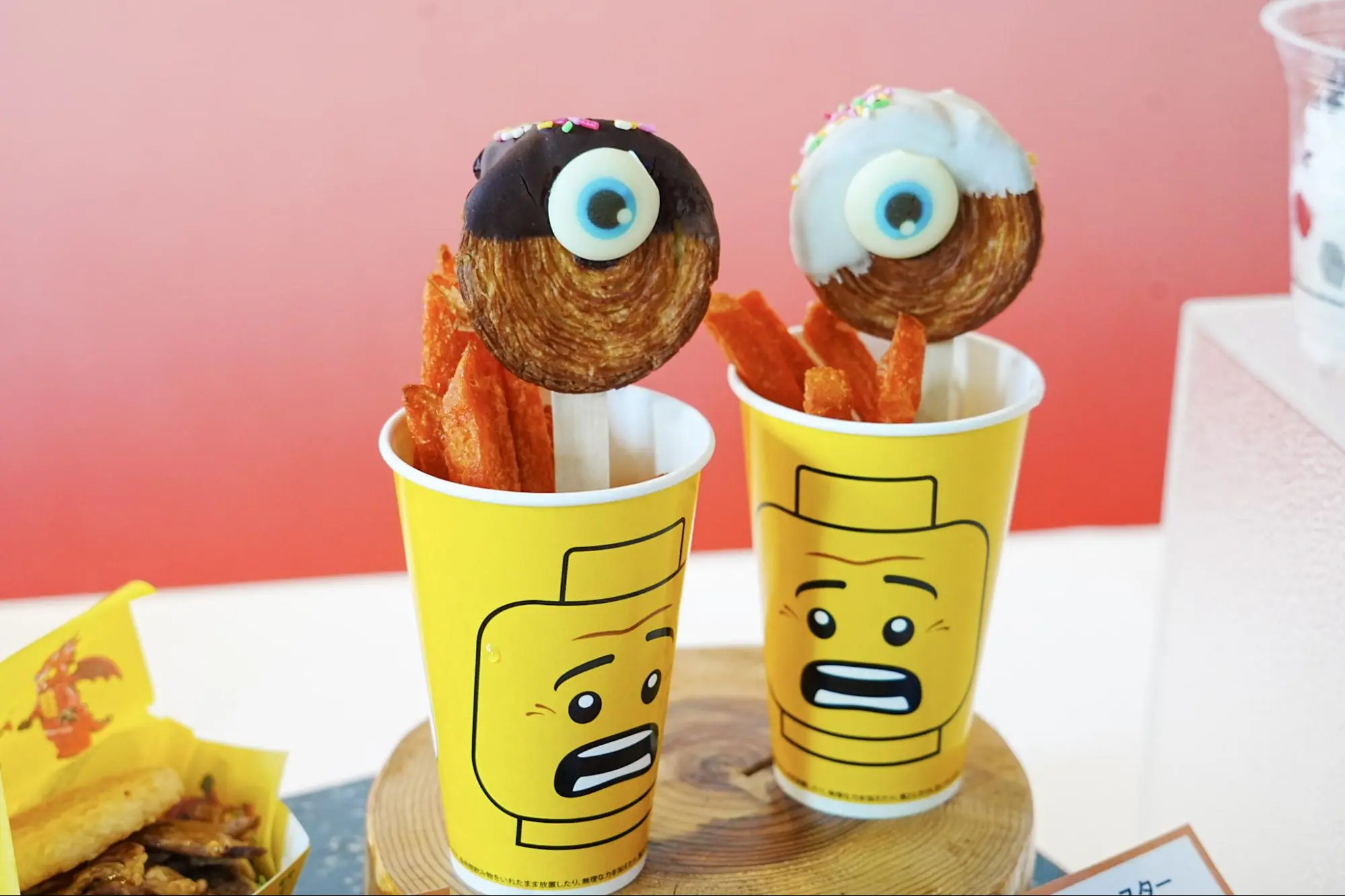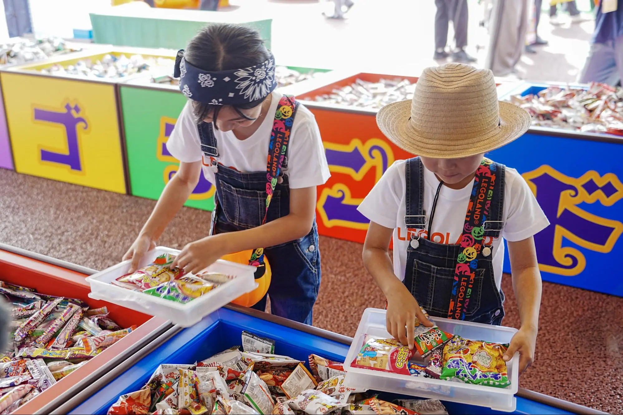 各レストランでキッズセットを注文すると、お子さまにペーパーハットをプレゼント。また、イベントエリアのキッチンカーで2,500円ごとのお買い上げで、限定ファクトリーブロックがもらえますよ!