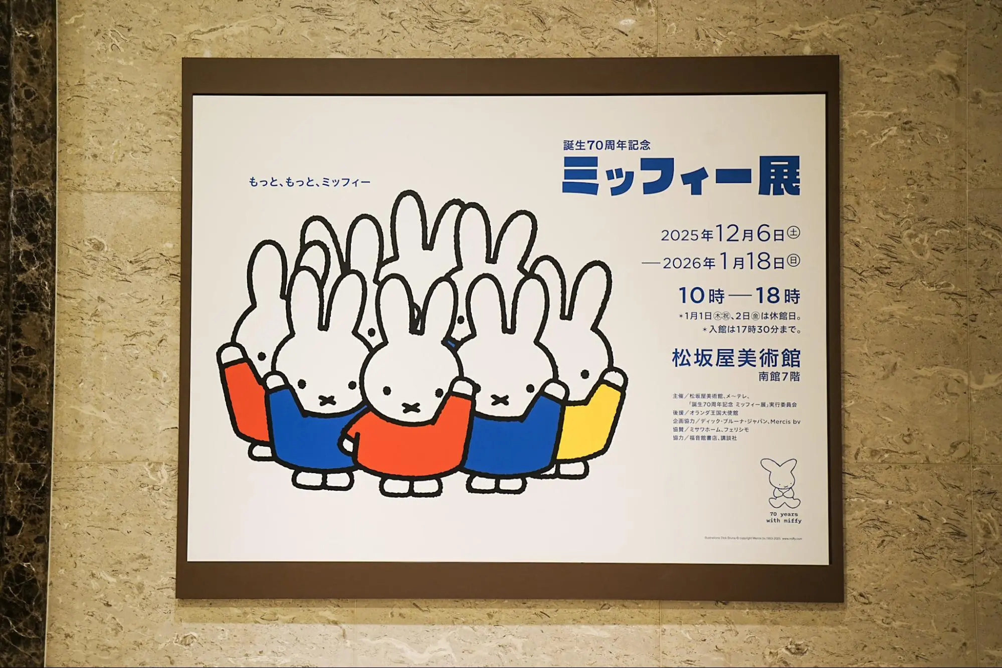「誕生70周年記念 ミッフィー展」が2025年12月6日(土)から2026年1月18日(日)まで、名古屋・松坂屋美術館にて開催中です。