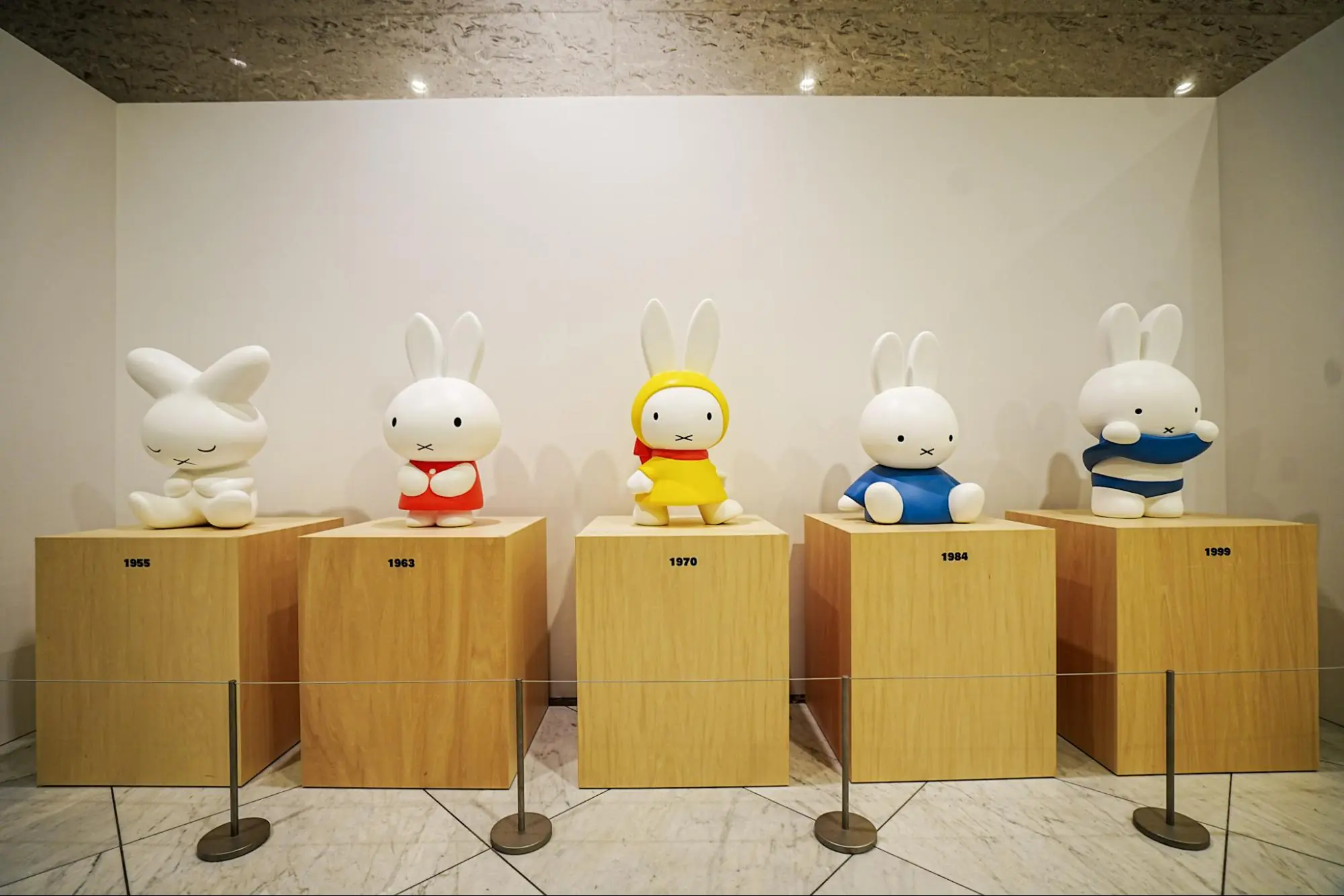 展覧会入り口には、歴代のミッフィーがずらり!こちらのスペースのみ撮影OKなので、記念撮影にぴったりです。