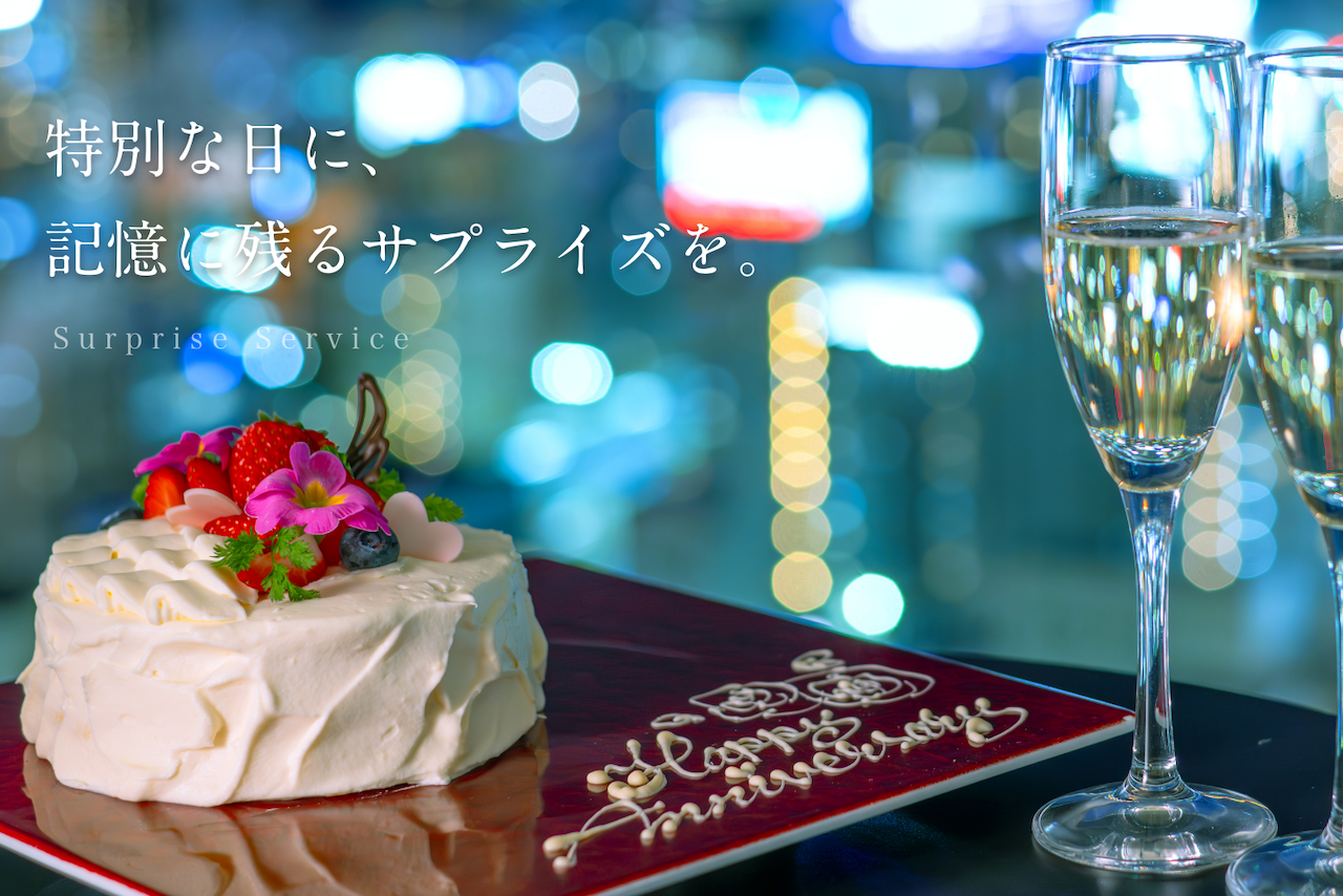 花束やサプライズ演出の手配も可能なので、プロポーズや記念日にもぴったり!