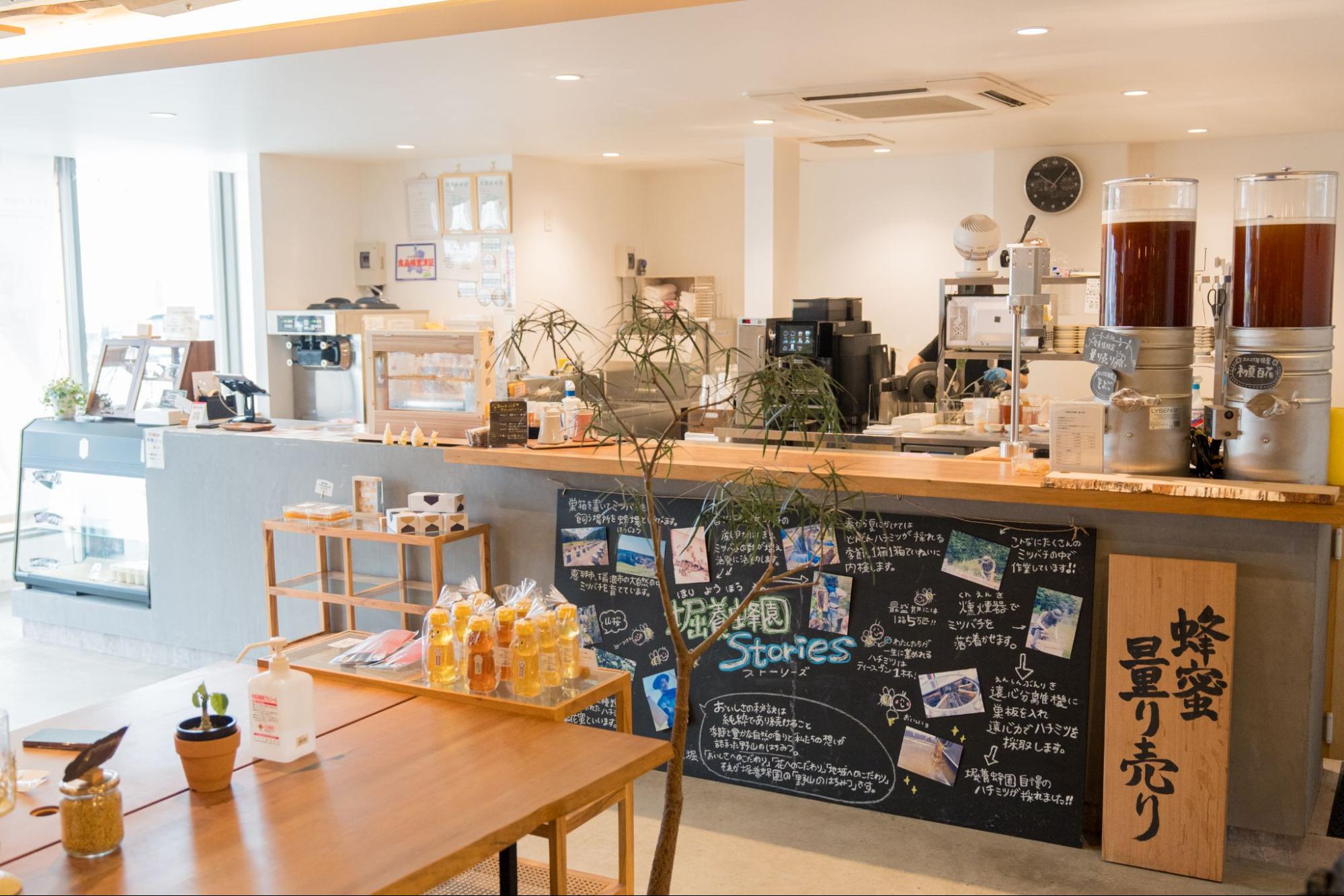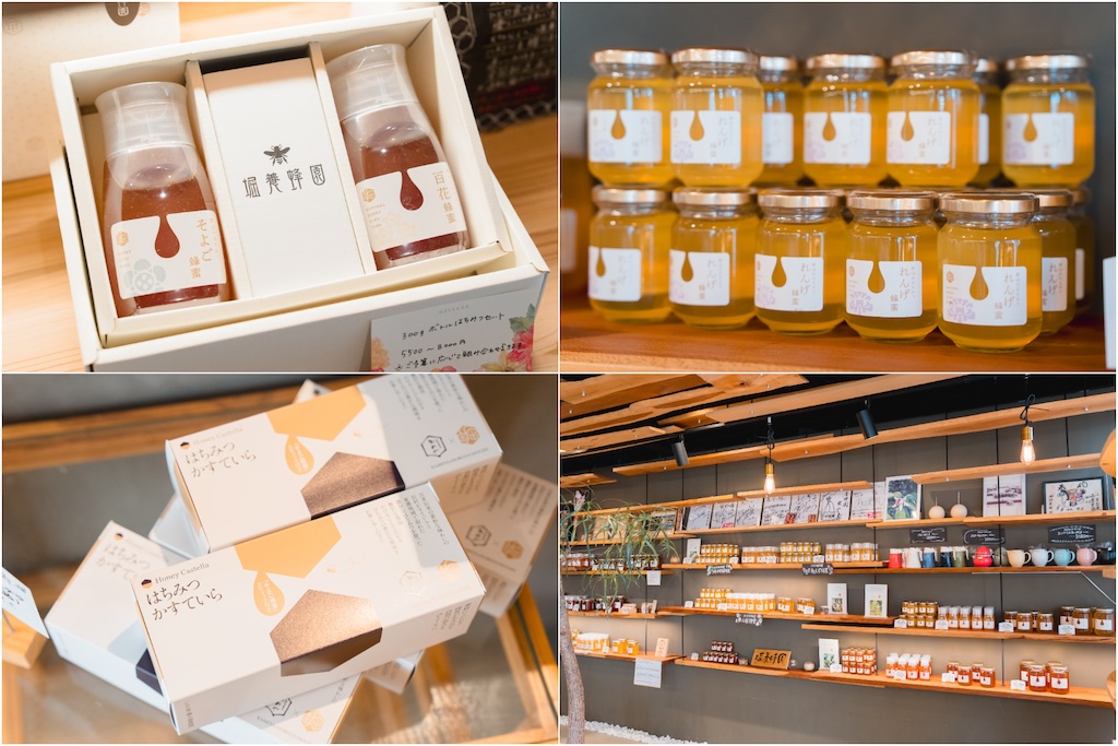 店内では蜂蜜の物販もあり、試食ができるのでお好みの蜂蜜を見つけていただけます。はちみつそのものはもちろん、はちみつを使ったスイーツや加工品も充実。自然の甘さと香りが詰まった商品は、お土産にも最適です。