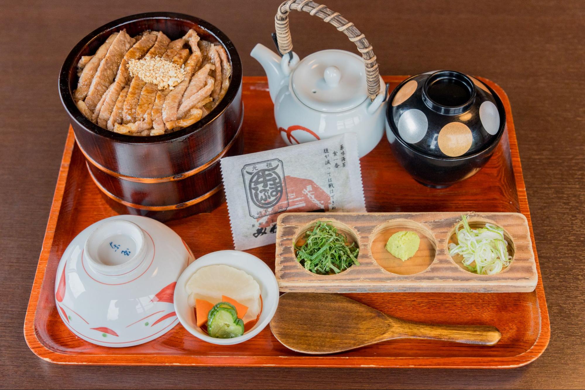 一杯目はそのまま肉の旨みを堪能し、二杯目は薬味を添えて風味豊かに、三杯目はだしをかけてお茶漬け風に。三通りの食べ方で、飛騨牛の魅力を存分に楽しめます。