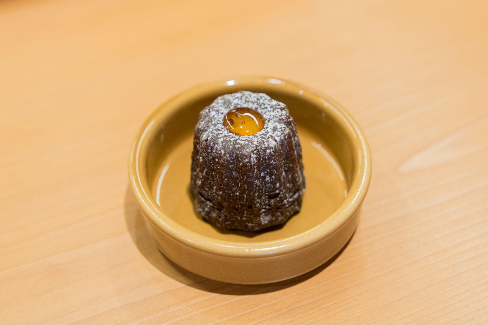 「カヌレ」は、堀養蜂園でつくる蜜蝋を表面に塗った本格派。ガリっとした食感と、カヌレのくぼみにかかったそよご蜂蜜の相性が抜群です。