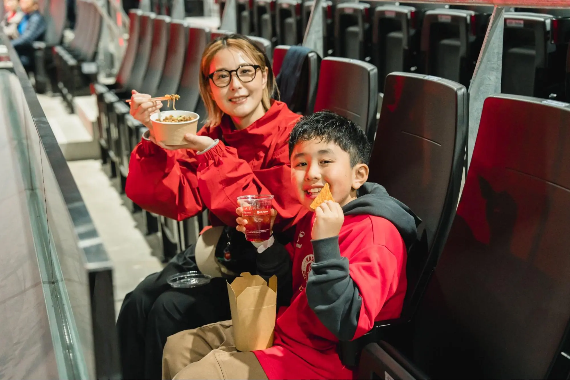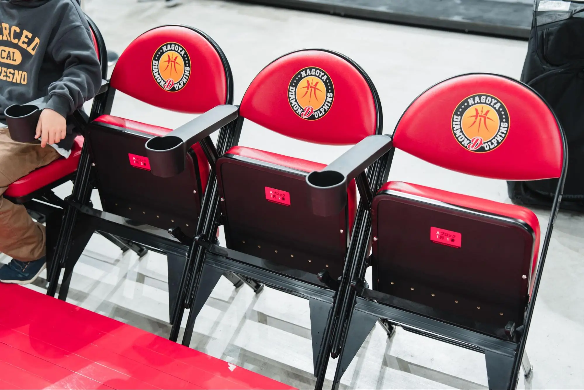 実際に座ってみると、中央から全体を俯瞰できるため、ボールを持っていない選手の動きまでよく見えます。全席にカップホルダーが完備されているので、アリーナグルメを楽しみながら快適に試合を見守ることができます。