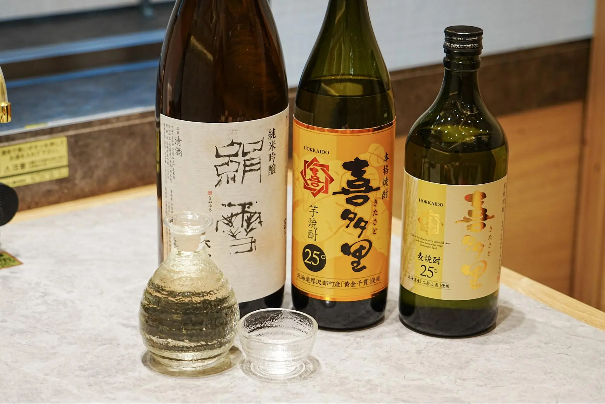 北海道・旭川の地酒「大雪乃蔵 純米吟醸 絹雪」、北海道ニセコの清らかな水で仕込んだ本格焼酎「北海道焼酎 喜多里」など、北海道の日本酒や焼酎も取り揃えています。