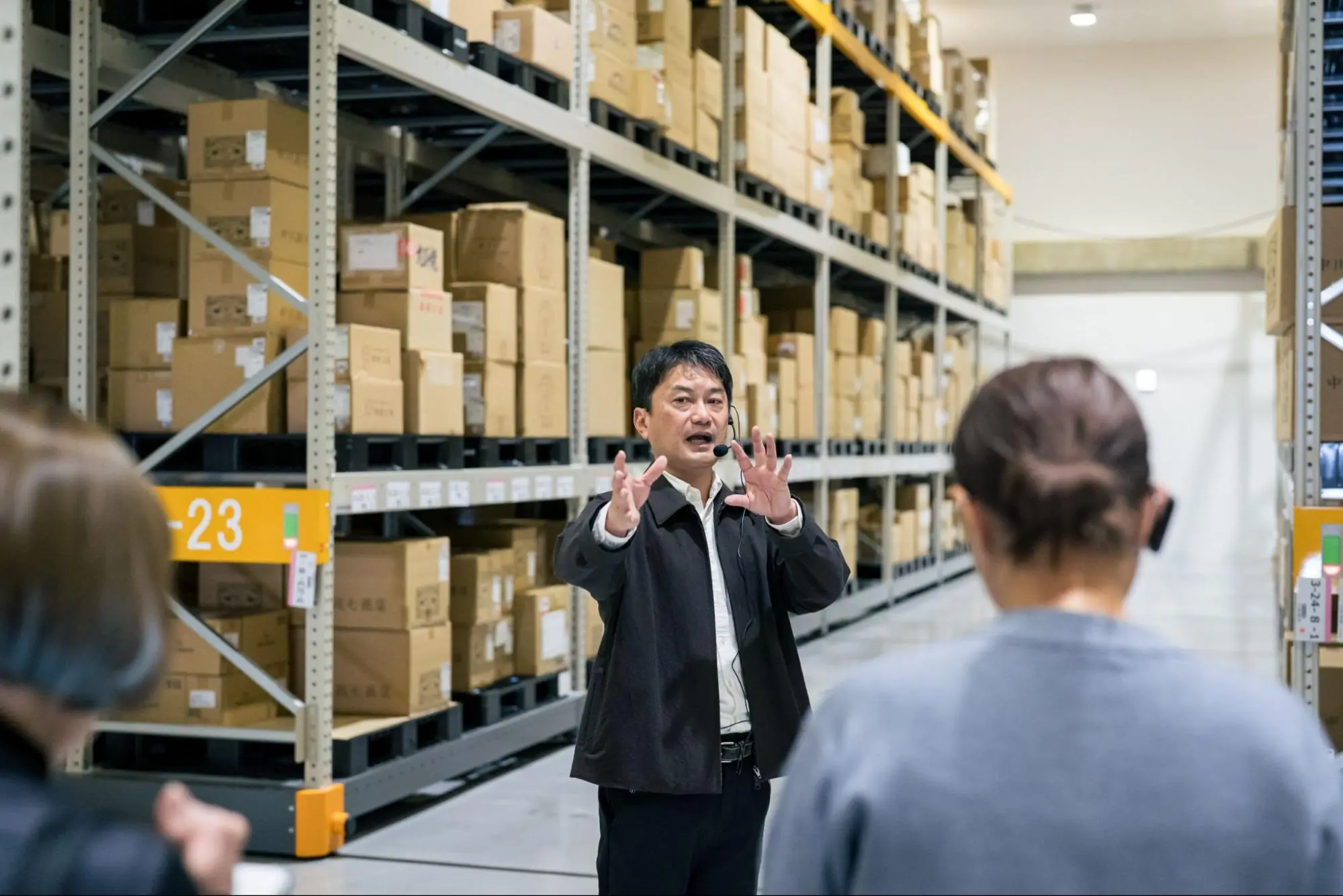 続いては2024年にオープンした「NKG倉庫」。延床面積2700 坪の物流拠点で、毎日約10万点の工芸品が全国へと届けられています。中川政七商店の頭文字である「NKG」には、《日本の工芸を元気に》という想いも込められています。