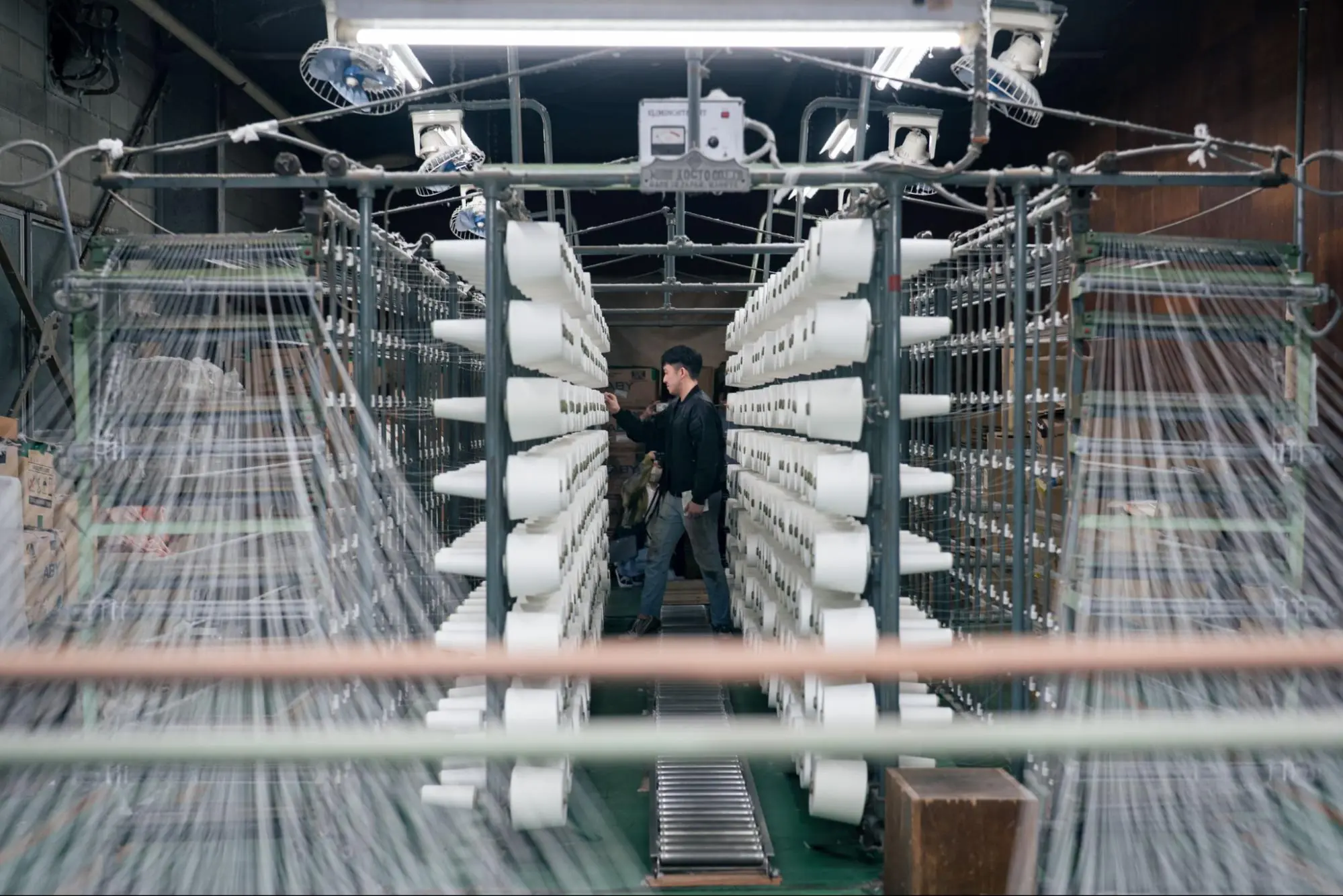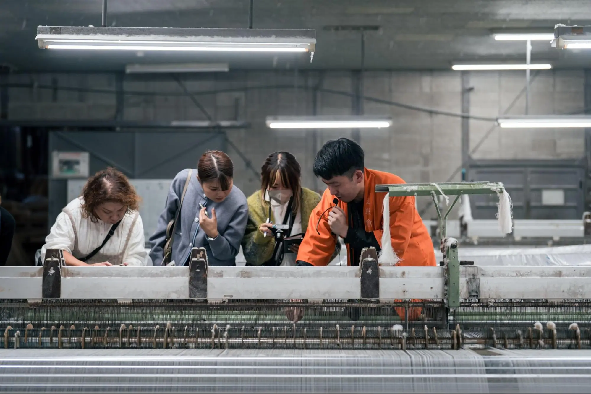 「天理 倉の耕流祭」では、工場内で行われる整径工程を見学し、実際に切れた糸をつなぐ体験もできますよ。
