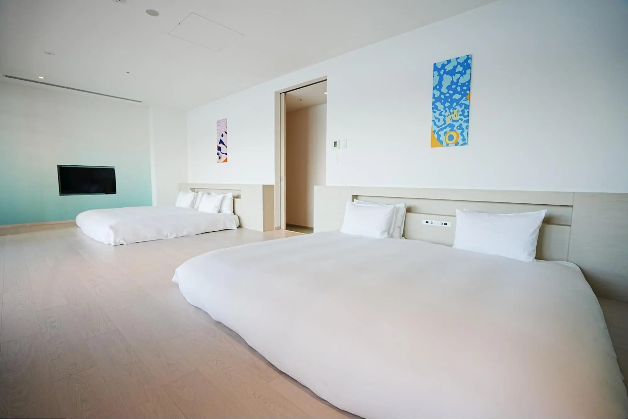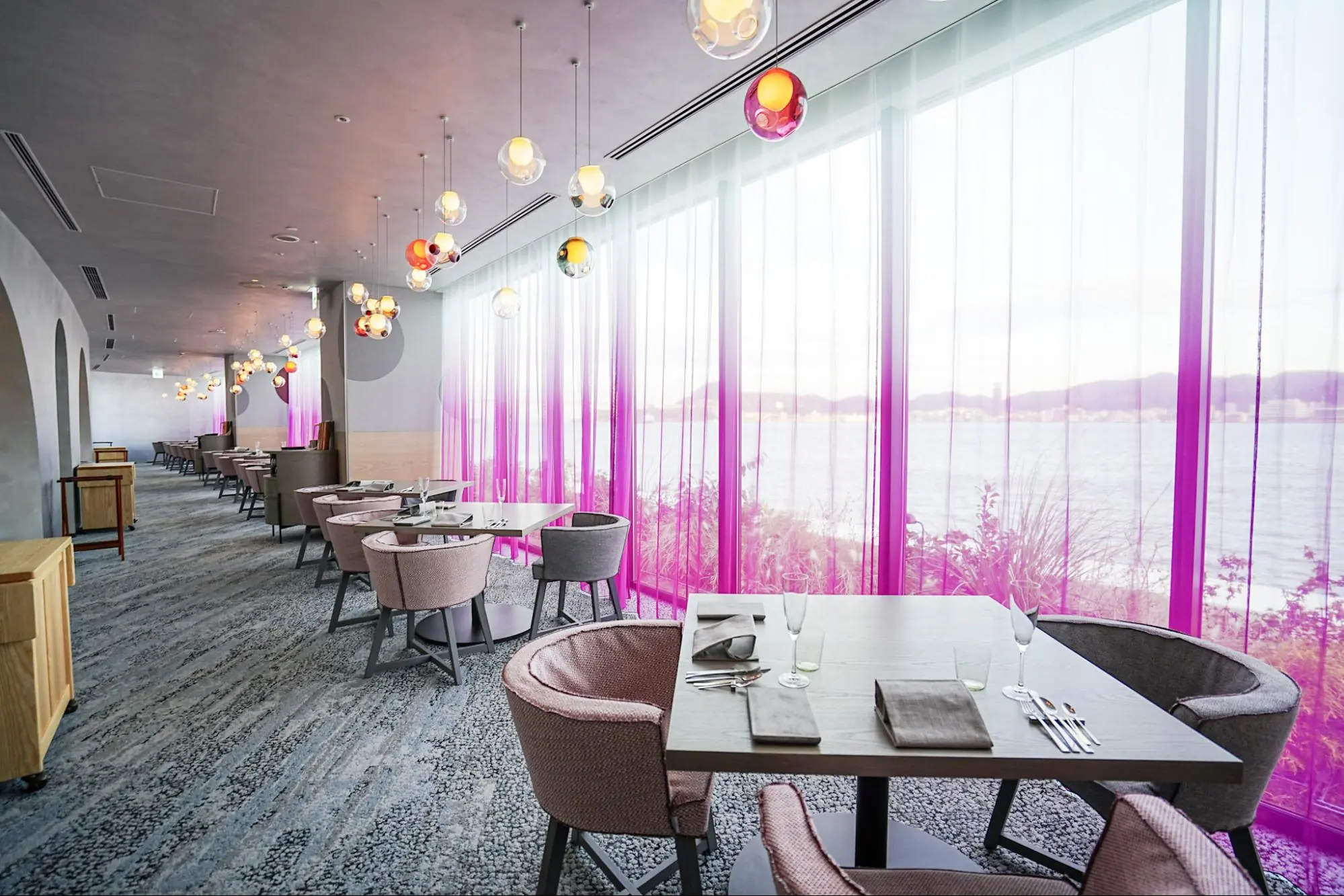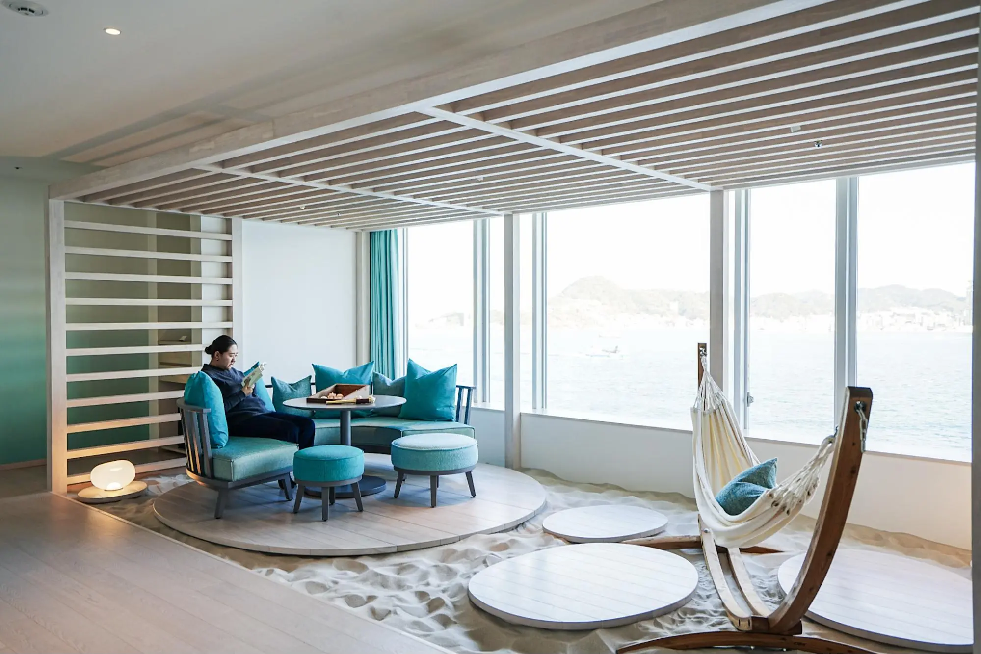 リゾナーレ下関の魅力は、ただ泊まるだけじゃなく、過ごし方そのものが心地いいこと。 開放的なカフェ空間、砂浜のある客室、海に溶け込むようなプール、下関の食、そして体験。