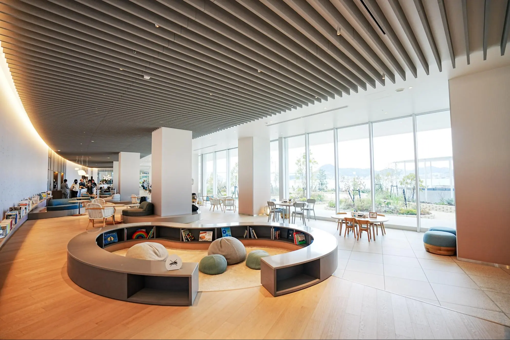 エントランスを入ると、開放的なBooks&Cafeが広がっています。自然光がたっぷり入り、とても気持ちの良い空間です。