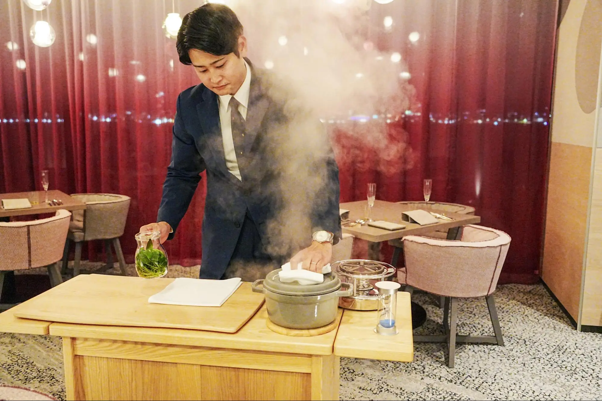 夕食は「OTTO SETTE SHIMONOSEKI(オットセッテ シモノセキ)」へ。下関名物の「ふぐ」をイタリア料理のフルコースで味わえるメインダイニングです。