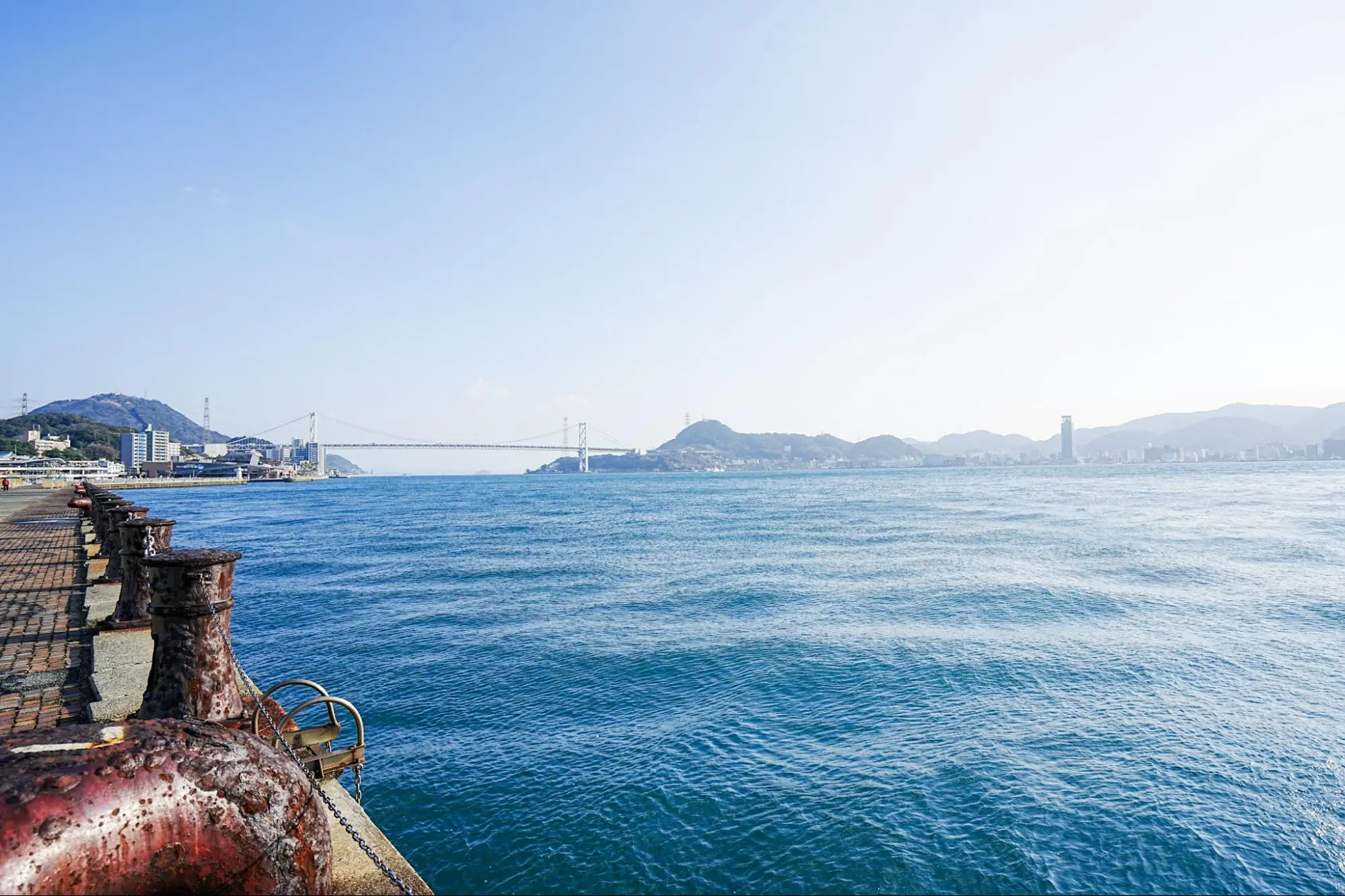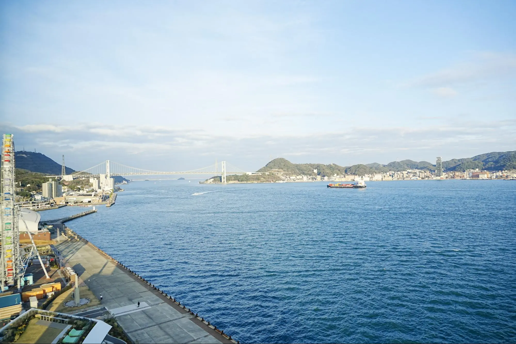 移動時間は少し長めですが、車窓を眺めながら旅のスイッチを入れるのも、大人旅の楽しみ。潮風と関門海峡の絶景が出迎えてくれました。