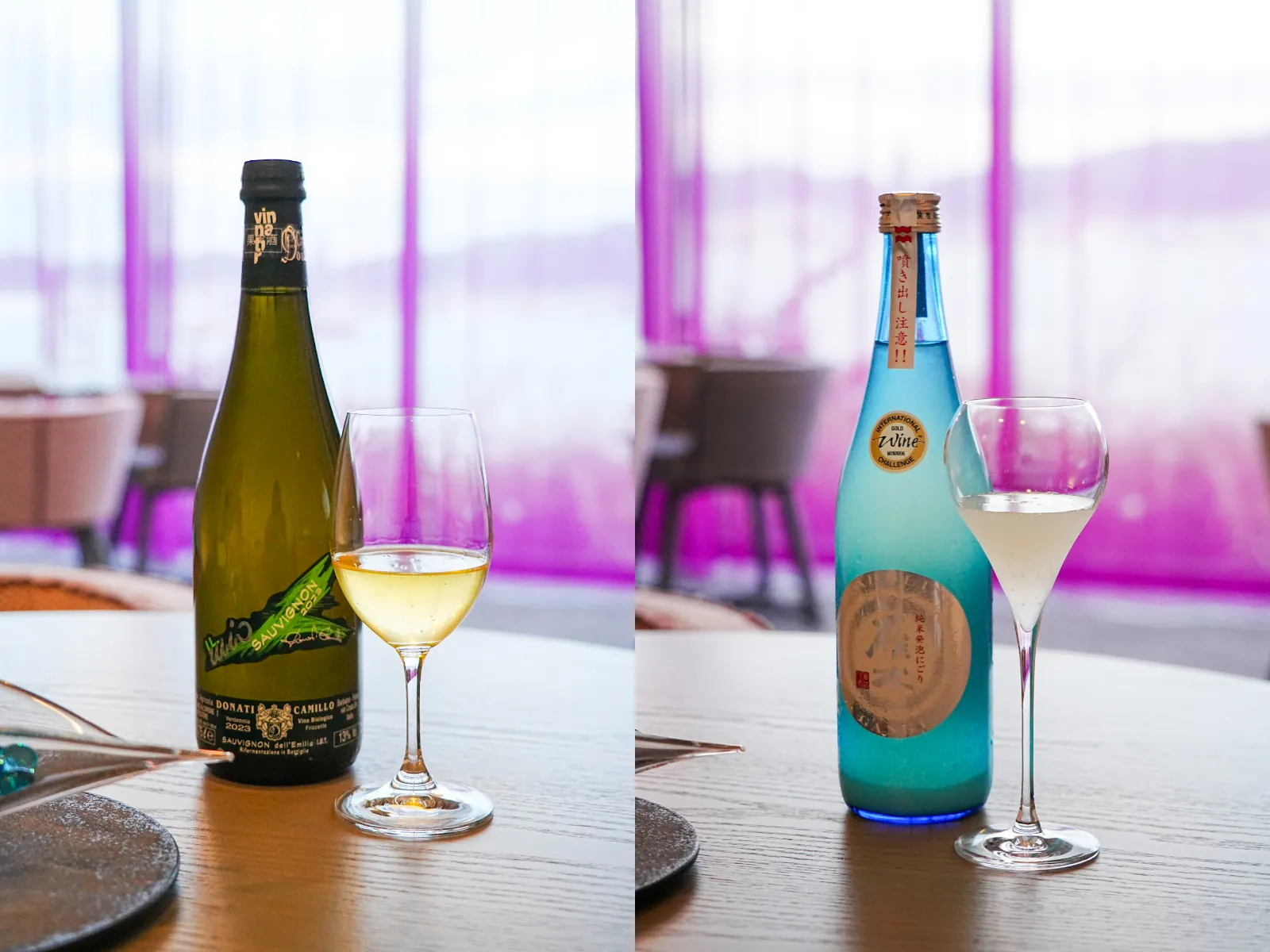 合わせるのは、ソムリエがセレクトしたペアリングワイン。 一皿に合わせ一杯、料理の個性に合わせ選んだ特別なワインが楽しめます。(別途有料)