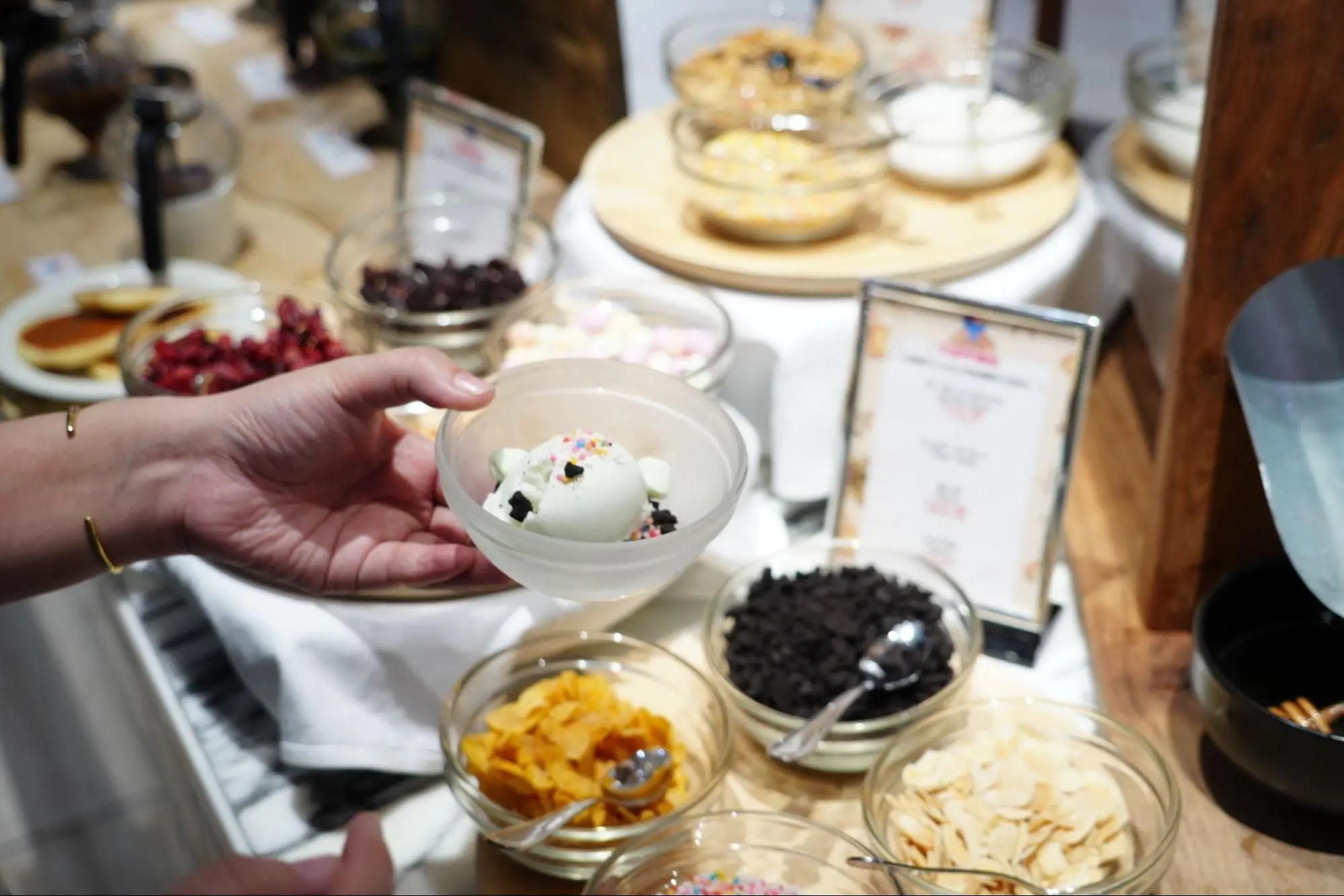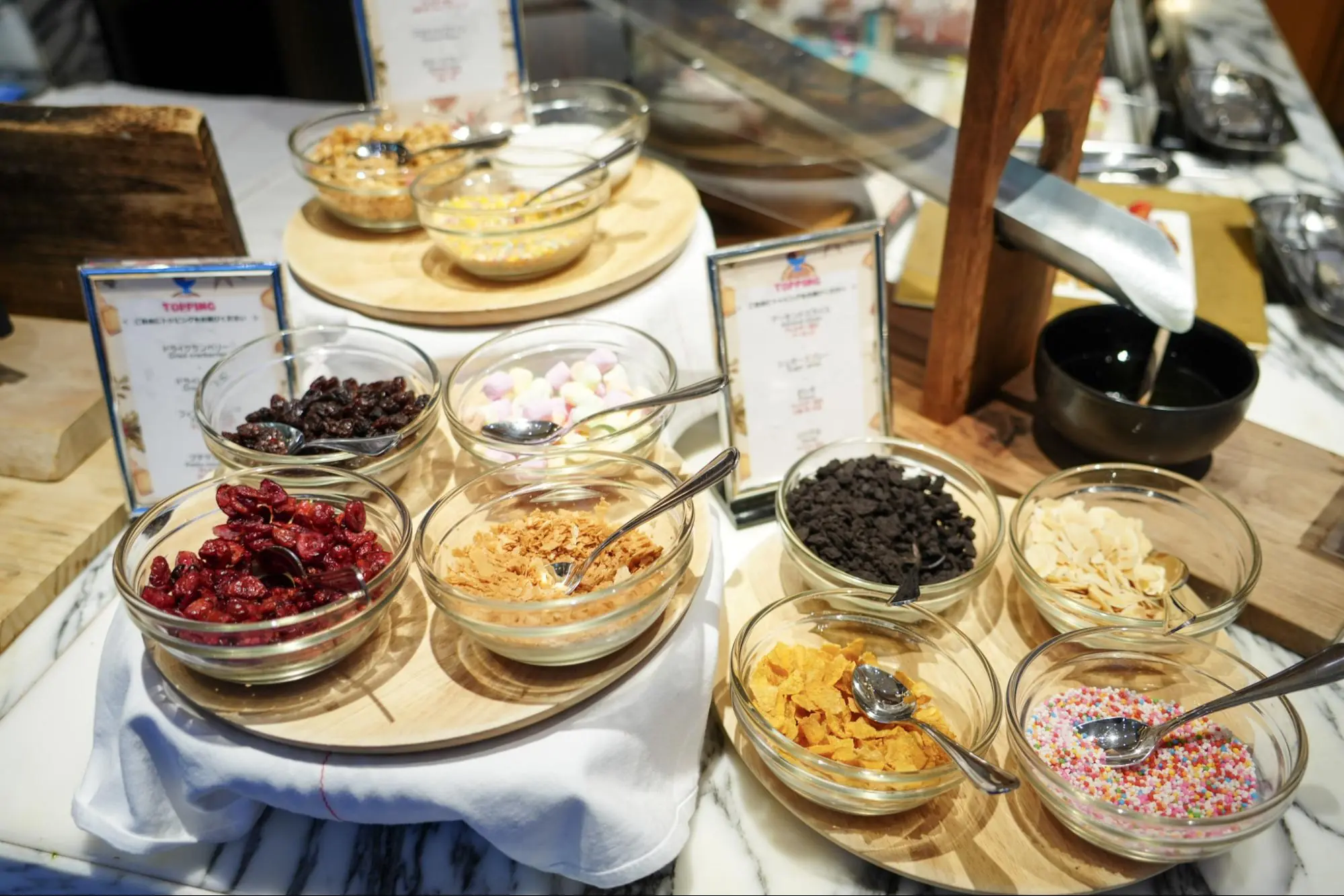 オレオ、カラースプレー、ドライクランベリーなど11種類のトッピングでオリジナルのアイスが作れちゃいます!