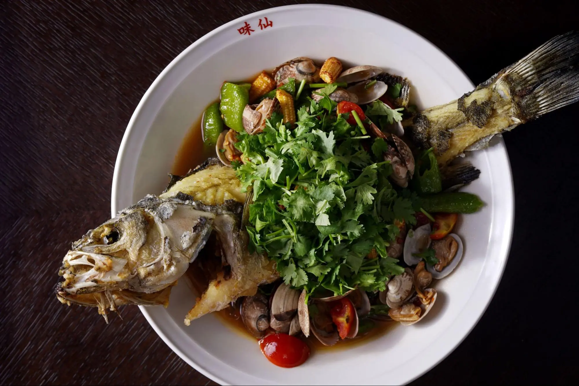 矢場味仙のあさり炒めをベースに開発。あさり炒めの海鮮の旨味を活かし、山盛りのパクチーとフレッシュのトマトや野菜をふんだんに使用した迫力のある大皿料理です。アクアパッツァをパクチーで食べるという新感覚!お祝いにもぴったりなメニューです。