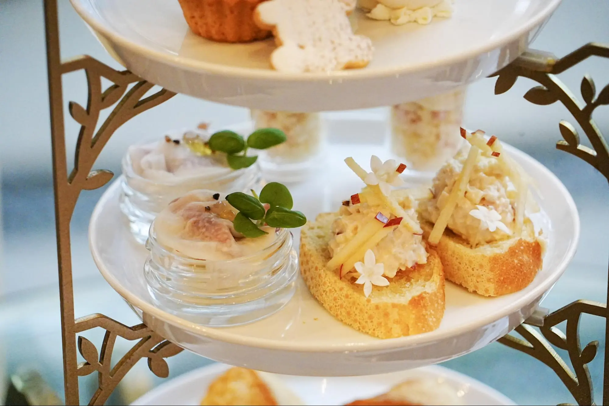 アフタヌーンティーで、こんなにもしっかりとしたお料理をいただけるなんて、とても贅沢です。特に「鶏胸肉と林檎のホワイトサラダ」が絶品でした。
