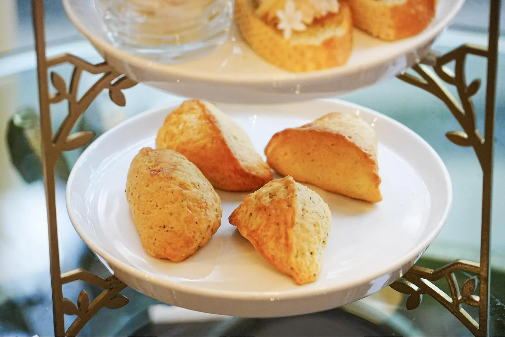 スコーンはホテル内のベーカリーで焼き上げて、席まで届けてくれるんです!外はサクッ、中はしっとり。焼きたてのスコーンがいただけるなんて、贅沢ですよね。