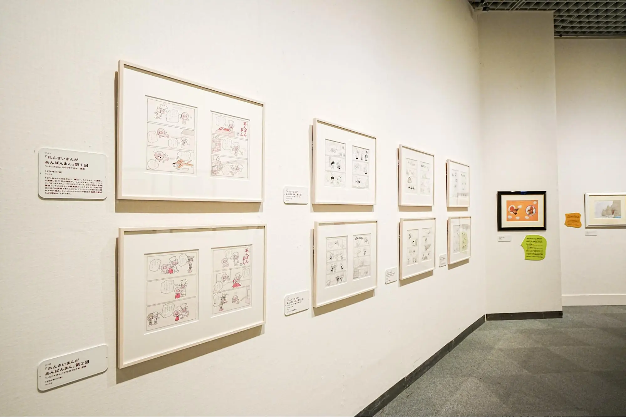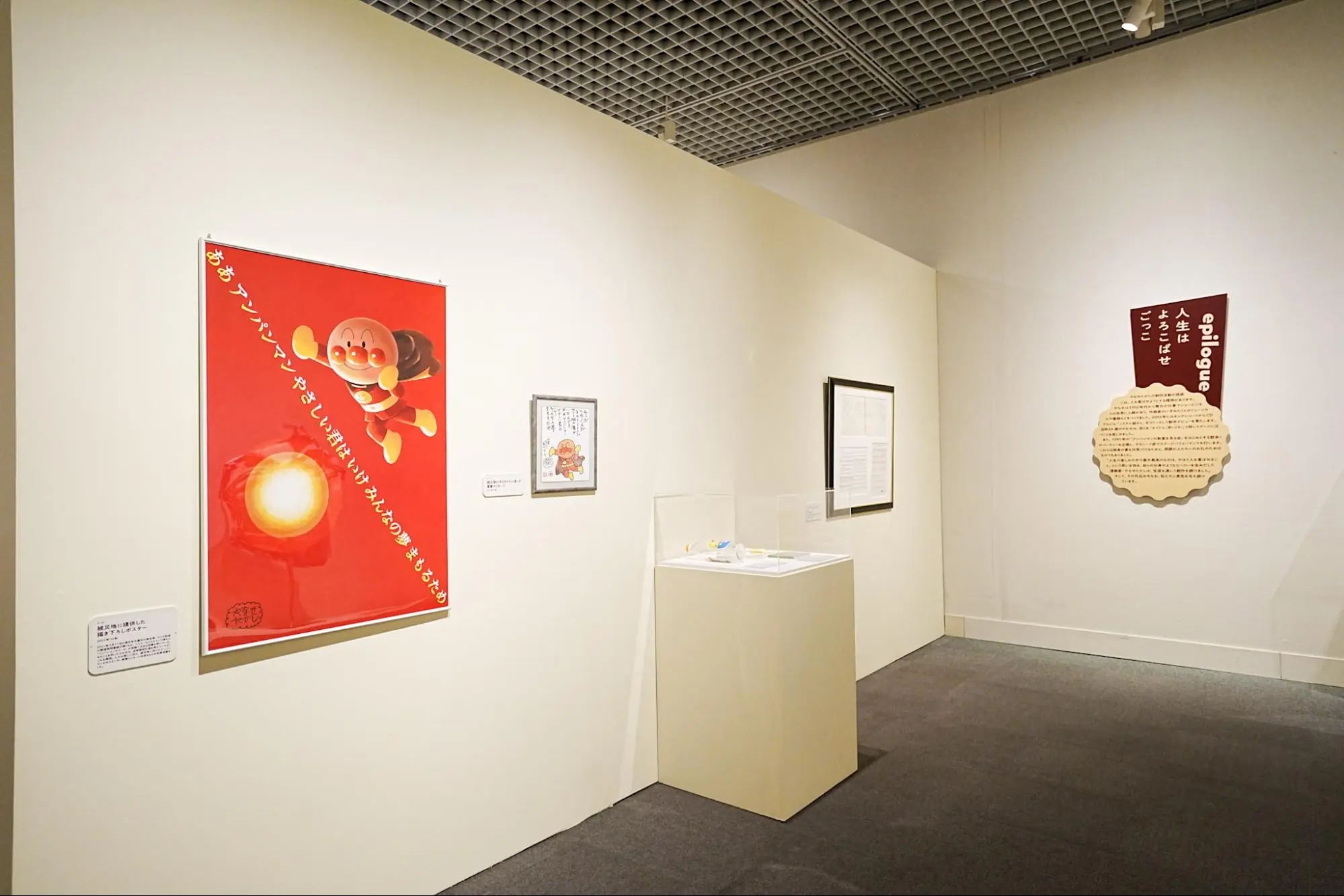 会場では、やなせ自身がアンパンマンを解説した作品や絵本原画、象徴的シーンのキャンバス画などを通して、誕生から広がりまでをたどれます。