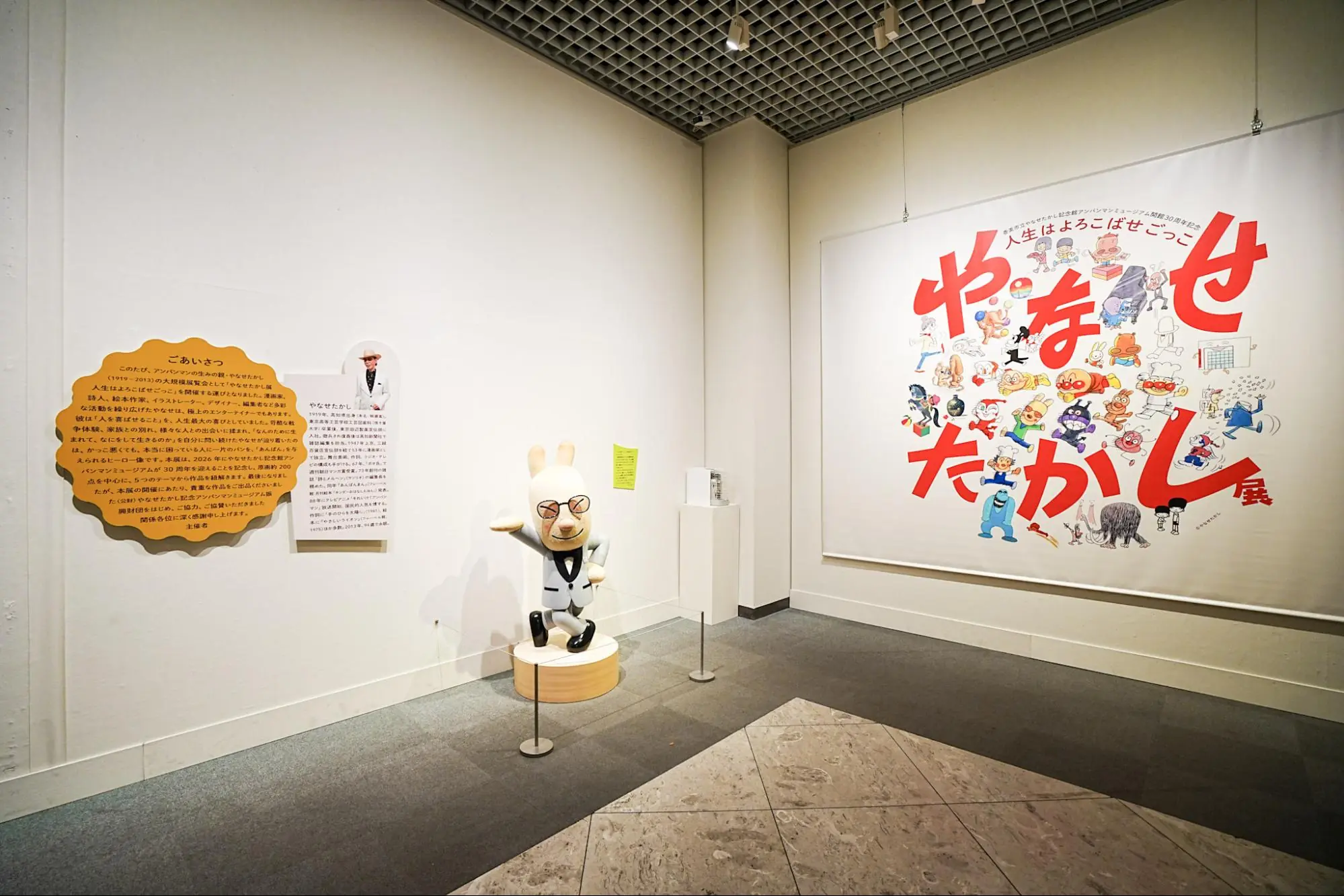 会場では、やなせたかしの歩みを一望できる特大年譜と貴重な初期作品・資料を通して、「やなせたかし」を形づくった要素を“解剖”するパートからスタート。
